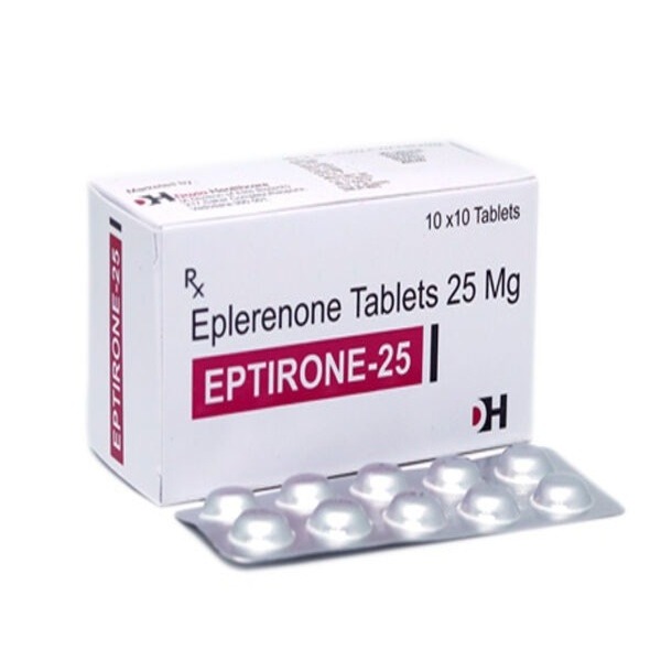 Eptirone 25mg Tablet contains Eplerenone, which works by blocking the action of aldosterone, a natural substance that raises blood pressure. It also slows the progression of heart failure by reducing heart damage.