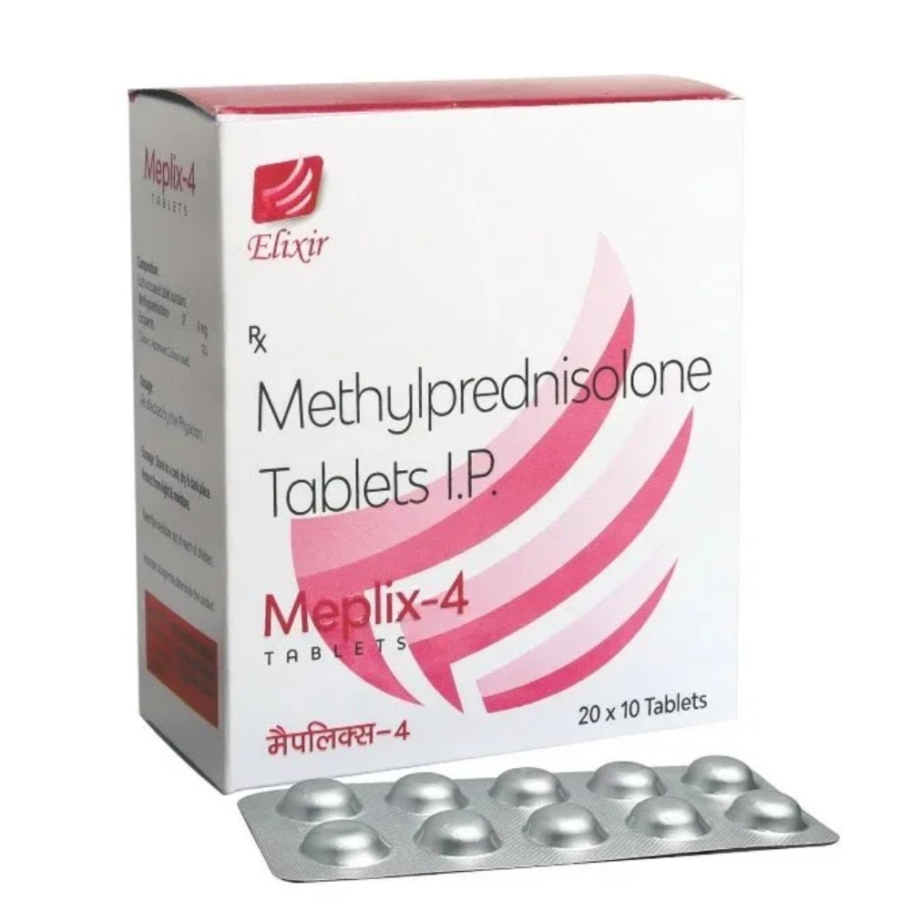 Meplix 4 mg tablet (containing Methylprednisolone) is a corticosteroid used to treat inflammatory, allergic, and autoimmune conditions. It treats arthritis, lupus, psoriasis, ulcerative colitis, asthma, and severe allergies by suppressing the immune system and reducing swelling, redness, and itching. It also treats specific blood, eye, and skin disorders.