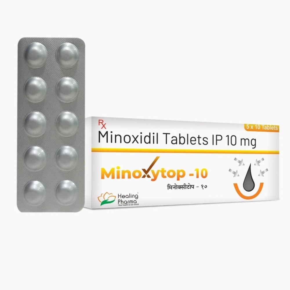 MINOXYTOP 10 MG tablet is a vasodilator medication primarily used to treat severe, resistant high blood pressure (hypertension). It is also prescribed off-label to treat hair loss (androgenetic alopecia) by improving blood flow to hair follicles. It works by relaxing and widening blood vessels