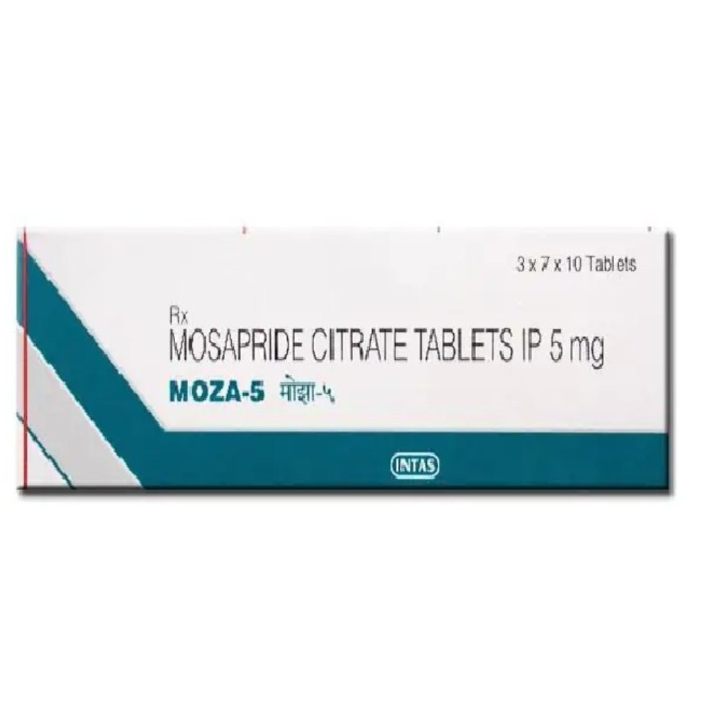 MoZA 5 Tablet is a prescription medicine used in the treatment of gastroesophageal reflux disease. It increases the release of certain chemical that improves the movement of food inside the intestine and helps to increase gastric emptying of both liquid and solid.