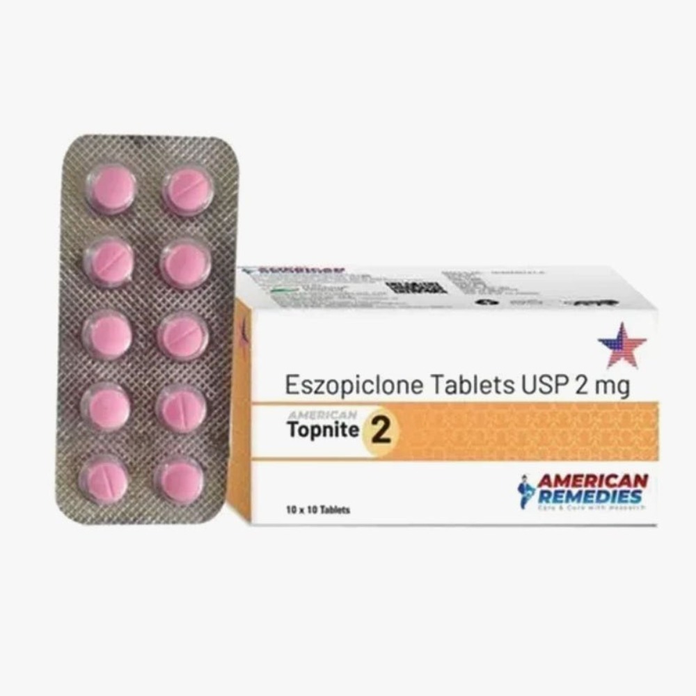 Topnite 2 mg tablets (containing Eszopiclone) are used for the short-term treatment of insomnia to help individuals fall asleep faster, reduce nighttime awakenings, and improve sleep maintenance. As a sedative-hypnotic, it works by slowing nerve cell activity in the brain. It should be taken immediately before bed with at least 7-8 hours available for sleep