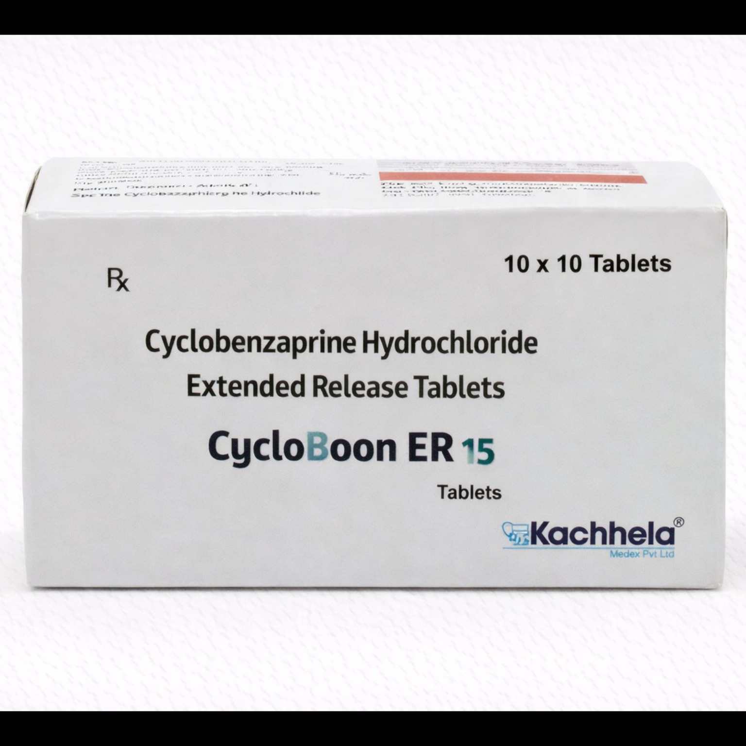 Cycloboon ER 15 mg contains Cyclobenzaprine Hydrochloride (Extended-Release), a centrally acting skeletal muscle relaxant.