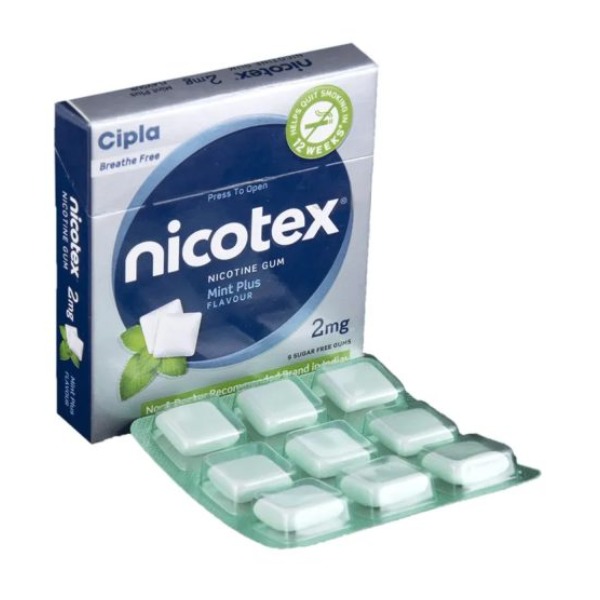 Nicotex Gum 2mg is a Nicotine Replacement Therapy (NRT) used to help adults quit smoking by gradually reducing nicotine dependence, managing cravings and withdrawal symptoms (like irritability, anxiety) by providing controlled nicotine without the harmful chemicals in cigarettes, as part of a 12-week plan. It's for people who smoke up to 20 cigarettes a day and should be used with slow chewing, resting it between cheek and gum, as directed by a doctor or pharmacist.