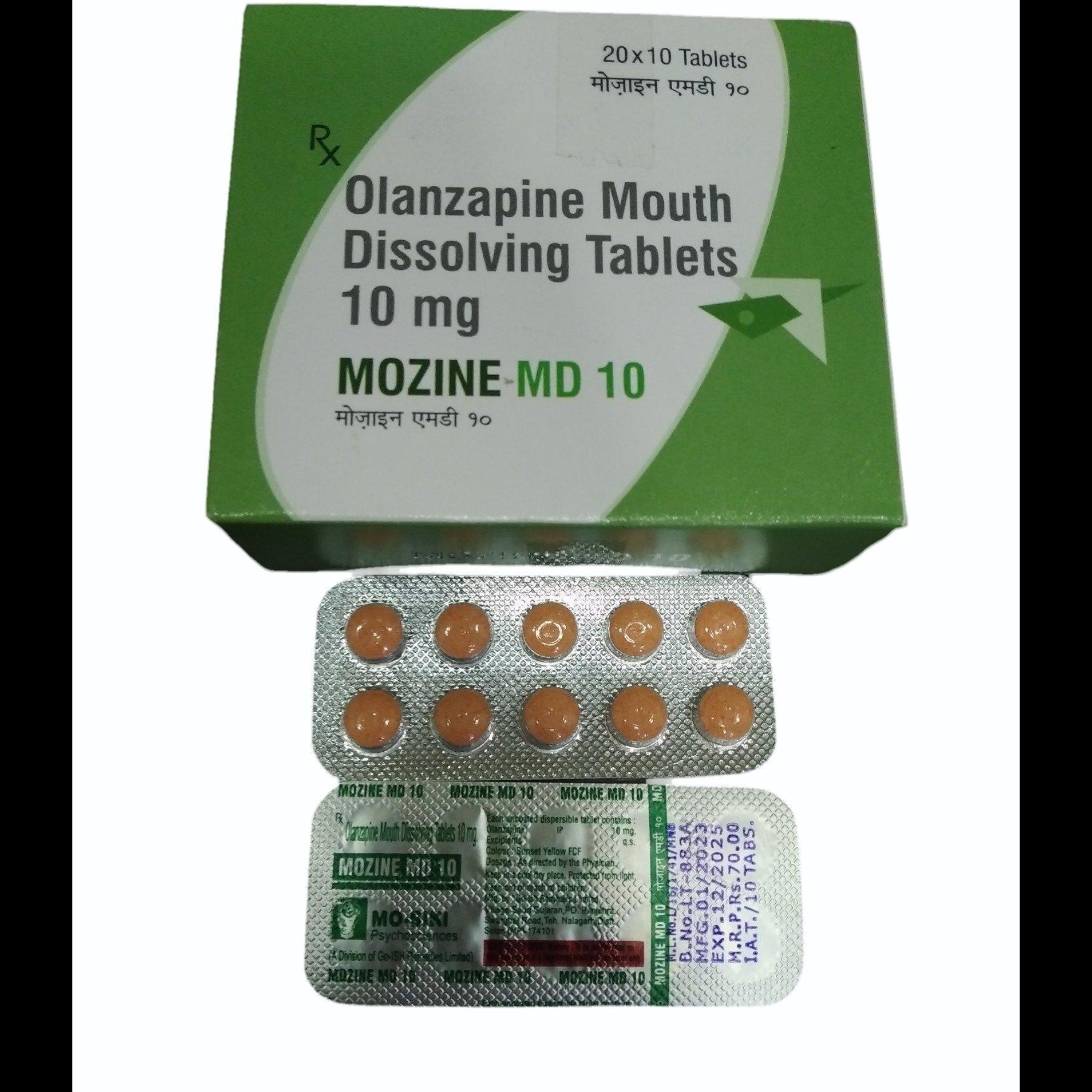 Mozine MD 10 mg contains Olanzapine 10 mg in a mouth-dissolving tablet form.