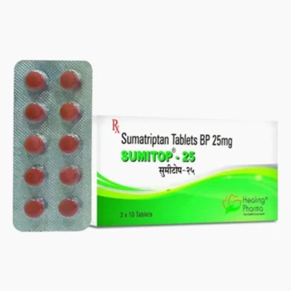 Sumitop 25 MG, containing Sumatriptan, is used to treat acute migraine headaches by constricting widened blood vessels in the head, stopping pain signal transmission, and blocking nausea-causing chemicals, providing relief from throbbing pain, sensitivity to light/sound, and nausea associated with migraines.