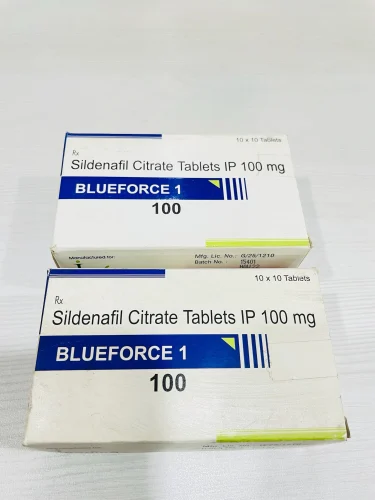 Sildenafil is used to treat men who have erectile dysfunction (also called sexual impotence). Sildenafil belongs to a group of medicines called phosphodiesterase 5 (PDE5) inhibitors. These medicines prevent an enzyme called phosphodiesterase type-5 from working too quickly. Blueforce 100 is a powerful performance-enhancing medication containing Sildenafil 100mg. It improves stamina, promotes stronger erections, and enhances sexual satisfaction. Blueforce 100, with Sildenafil as its active ingredient, enhances blood flow to the genital area, leading to firmer and longer-lasting erections. It is ideal for men seeking improved sexual performance and pleasure. Usage Instructions:Take one Blueforce 100 tablet orally with water, 30 minutes to 1 hour before sexual activity. Avoid heavy meals or alcohol consumption before using Blueforce 100 for optimal results. Medicinal Advantages: Enhanced Performance: Blueforce 100 boosts stamina and supports stronger, more sustained erections.Improved Blood Circulation: Sildenafil 100mg enhances arousal and sexual performance by increasing blood flow to the penis. Mechanism of Action:Sildenafil in Blueforce 100 inhibits the enzyme PDE5, leading to increased levels of cyclic guanosine monophosphate (cGMP). This mechanism relaxes smooth muscles in the penile region, improving blood flow and erection quality. Off-Label Uses:While primarily indicated for erectile dysfunction, Blueforce 100 may have off-label uses such as treating pulmonary hypertension. Consult a healthcare provider for guidance on alternative uses. Expert Advice: Avoid grapefruit or grapefruit juice while using Blueforce 100, as it may interact adversely with Sildenafil.Inform your doctor about any medical conditions or medications before starting Blueforce 100.Adhere to the prescribed dosage of Blueforce 100 to minimize the risk of side effects and maximize effectiveness.