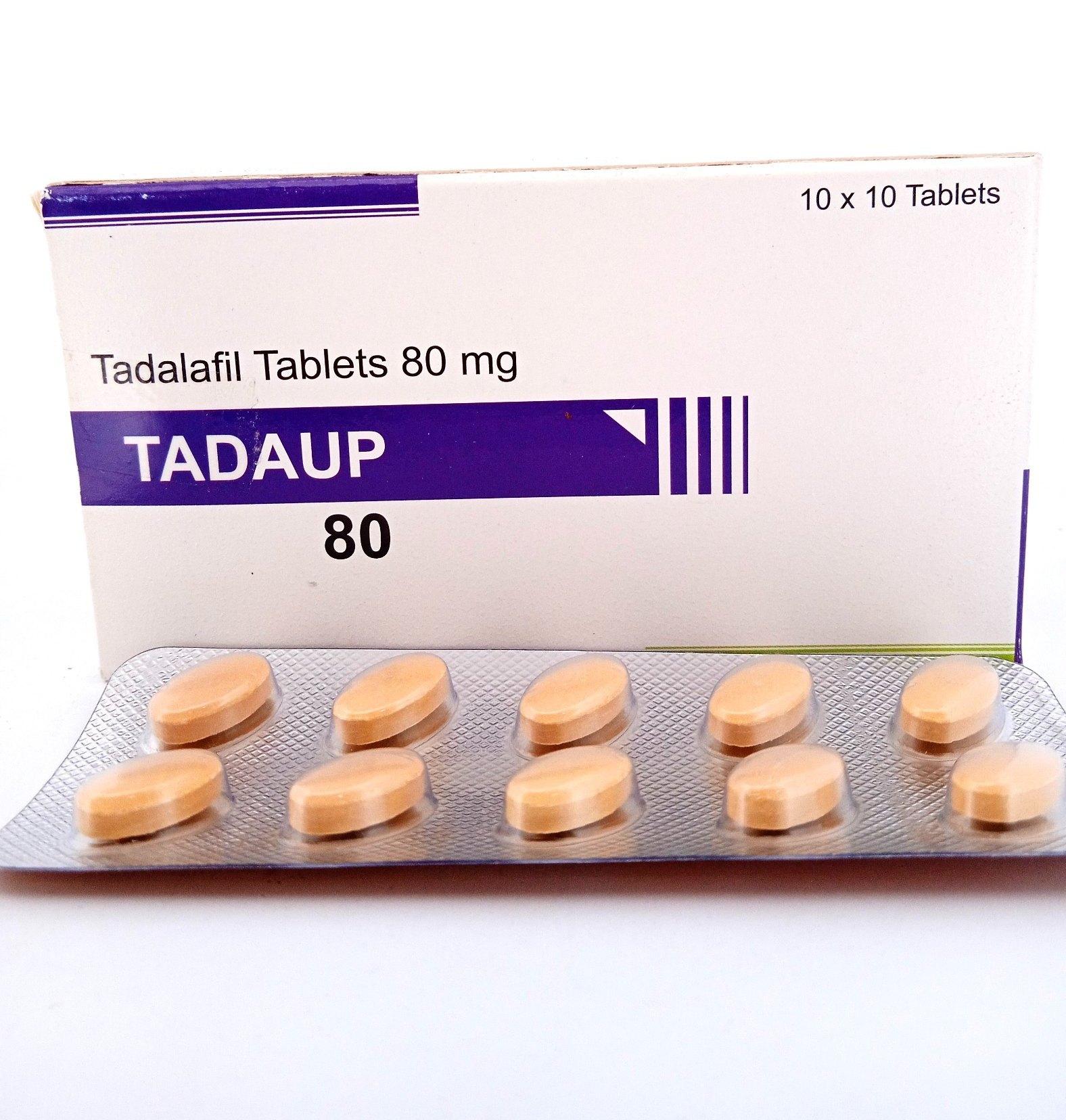 Product Name: TADAUP 80 mg (Tadalafil Tablets 80 mg) Active Ingredient: Tadalafil USP 80 mg per tablet — a phosphodiesterase type-5 inhibitor Dosage Form: Film-coated tablet (oral) Therapeutic Class: PDE-5 inhibitor Route of Administration: Oral Composition Each film-coated tablet contains: Tadalafil — 80 mg Excipients q.s. (quantum satis) Tablet Colour: Quinoline yellow (may vary by manufacturer) Therapeutic Use Primary Indication: Treatment of erectile dysfunction (ED) in adult men — works by relaxing blood vessels to improve blood flow during sexual stimulation In some contexts, tadalafil products may also help with benign prostatic hyperplasia symptoms, though lower doses (e.g., 5 mg) are common for that use Erectile Dysfunction (ED) Used for severe or treatment-resistant erectile dysfunction Helps achieve and maintain an erection during sexual stimulation Usually prescribed only when lower doses are ineffective How it works Blocks PDE-5 enzyme Increases blood flow to penile tissue, supporting erection during arousal Tadaup 80 mg is an extra-high dose of Tadalafil, a phosphodiesterase type 5 (PDE5) inhibitor used for the treatment of erectile dysfunction (ED). Tadalafil works by increasing blood flow to the penis during sexual stimulation, helping men achieve and maintain an erection. Packaging & Storage Packaging: Commonly available in blister packs/boxes (e.g., 10 tablets per pack) Shelf Life: Typically 24–36 months depending on manufacturer Storage: Store in a cool, dry place below 30 °C; protect from light & moisture