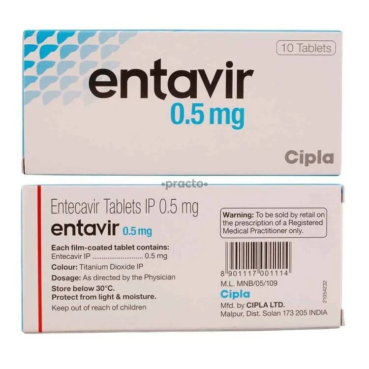 Generic Name: Entecavir 0.5 mg Tablet Active Ingredient: Entecavir 0.5 mg — a nucleoside analogue antiviral medication Dosage Form: : Oral tablet Strength : 0.5 mg entecavir per tablet Route of Administration : Oral (taken by mouth) Therapeutic Class: : Antiviral agent (specifically used for hepatitis B virus) Mechanism of Action: : Entecavir blocks the viral DNA polymerase enzyme needed for replication of hepatitis B virus (HBV). By inhibiting this viral enzyme, the drug prevents HBV from multiplying in liver cells. Packaging: : Typically available in blister packs of 10 tablets or similar Active ingredient: Entecavir 0.5 mg Class: Antiviral (Nucleoside analogue) Form: Oral tablet Chronic Hepatitis B Infection : Used to treat chronic hepatitis B virus (HBV) infection in adults and children over 2 years. Helps reduce viral load in the blood. Slows down liver damage caused by HBV Prevention of Liver Complications : Reduces the risk of: Cirrhosis (scarring of the liver) Liver failure Hepatocellular carcinoma (liver cancer) in chronic HBV patients Entavir 0.5 mg tablet is an antiviral medication primarily used to treat chronic hepatitis B virus (HBV) infection in adults and children (aged 2+), helping to reduce the virus amount, decrease liver inflammation, and lower risks of cirrhosis or cancer. It works by inhibiting the virus from reproducing, though it is not a cure and does not prevent transmission. Key Uses and Functions : Chronic Hepatitis B Treatment: It manages long-term HBV infection in patients with both compensated and decompensated liver disease. Virus Suppression: It inhibits the viral DNA polymerase enzyme, stopping the virus from multiplying in liver cells. Liver Protection: By reducing viral load, it helps prevent further liver damage. Usage Context: It is frequently taken in combination with other antiviral drugs to improve effectiveness How It Works : Inhibits HBV DNA polymerase, an enzyme required for viral replication. Prevents HBV from multiplying inside liver cells, allowing the immune system to control infection