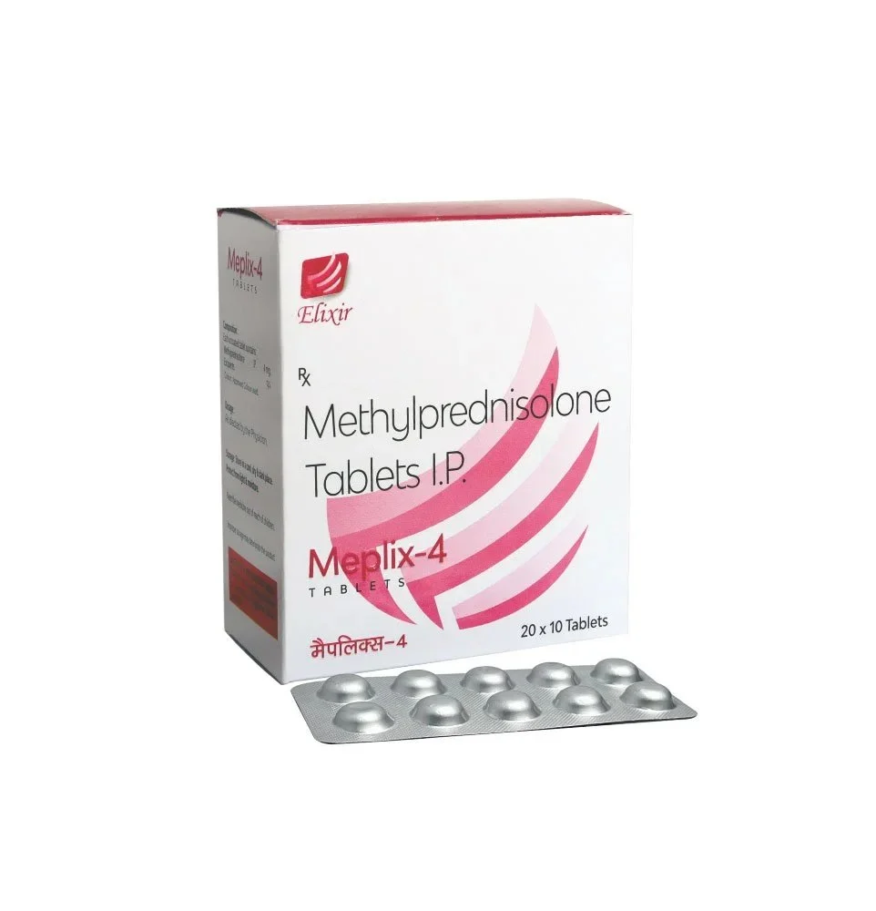 Generic Name: Methylprednisolone 4 mg Brand: MEPLIX 4 mg Tablet Dosage Form: Oral tablet Strength: 4 mg per tablet Therapeutic Class: Glucocorticoid corticosteroid (anti‑inflammatory and immunosuppressant) Active Ingredient Methylprednisolone – 4 mg A corticosteroid that reduces inflammation and suppresses immune system activity. How It Works MEPLIX 4 mg works by blocking the release of chemicals in the body that cause inflammation (redness, swelling) and allergic reactions. It also suppresses the immune system, making it useful in conditions caused by immune system overactivity. Meplix 4mg Tablet is a corticosteroid used to treat inflammatory, allergic, and autoimmune conditions like arthritis, lupus, asthma, and severe allergies by suppressing the immune system. It reduces swelling, pain, and itching by inhibiting inflammatory substances. Common uses include treating skin diseases, eye disorders, and ulcerative colitis. Allergic Conditions: Treatment of severe allergies, including allergic reactions. Inflammatory Diseases: Manages conditions like arthritis, lupus (systemic lupus erythematosus), and ulcerative colitis. Respiratory Issues: Used for asthma and other breathing problems. Skin and Eye Disorders: Treats various, often severe, skin (e.g., psoriasis) and eye conditions. Immune System Suppression: Reduces immune response in autoimmune disorders. MEPLIX 4 mg Tablet is used to treat a wide range of inflammatory and immune‑related conditions, including: Allergic conditions (e.g., severe allergic reactions, asthma flare‑ups) Rheumatic and autoimmune disorders (e.g., rheumatoid arthritis, lupus) Skin disorders (e.g., eczema, psoriasis) Eye inflammations (e.g., allergic eye reactions) Systemic lupus erythematosus (SLE) Other conditions where inflammation and immune response need to be controlled Allergic Conditions Severe allergies, hay fever, asthma flare-ups, and other allergic reactions. Inflammatory Disorders Rheumatoid arthritis, osteoarthritis flare-ups, lupus, and other autoimmune diseases. Reduces joint pain, swelling, and stiffness. Skin Disorders Eczema, psoriasis, dermatitis, and other inflammatory skin conditions. Eye Inflammations Allergic conjunctivitis and other inflammatory eye conditions. Respiratory Conditions Asthma, COPD exacerbations, and other inflammatory lung conditions. Other Immune-Related Conditions Conditions where the immune system is overactive, such as systemic lupus erythematosus (SLE) or certain blood disorders.