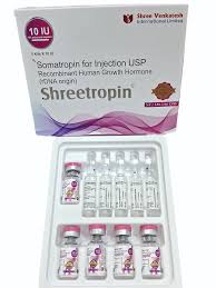 Shreetropin 10 IU Injection is a synthetic form of human growth hormone (somatropin) used primarily to treat growth-related disorders. It is commonly prescribed for children with growth hormone deficiency or conditions like short stature to help improve height and overall physical development. In adults, it may be used to manage growth hormone deficiency that can occur due to pituitary gland disorders, helping improve muscle mass, bone density, and energy levels. Additionally, it is sometimes used in certain medical conditions such as Turner Syndrome or Chronic Kidney Disease where growth may be affected. This injection should always be used under strict medical supervision, as improper use can lead to side effects like joint pain, swelling, or hormonal imbalance.